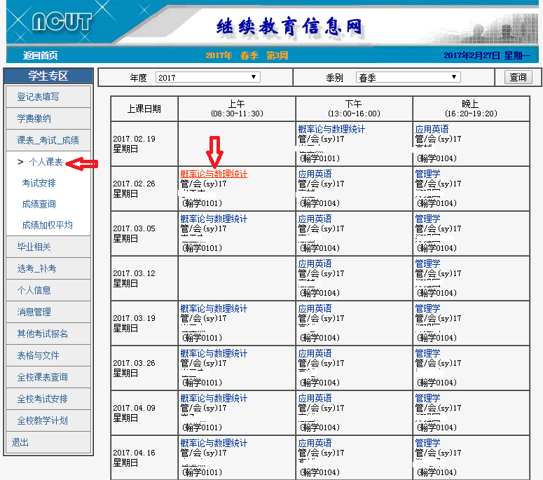 点击【课表_考试_成绩】à【个人课表】