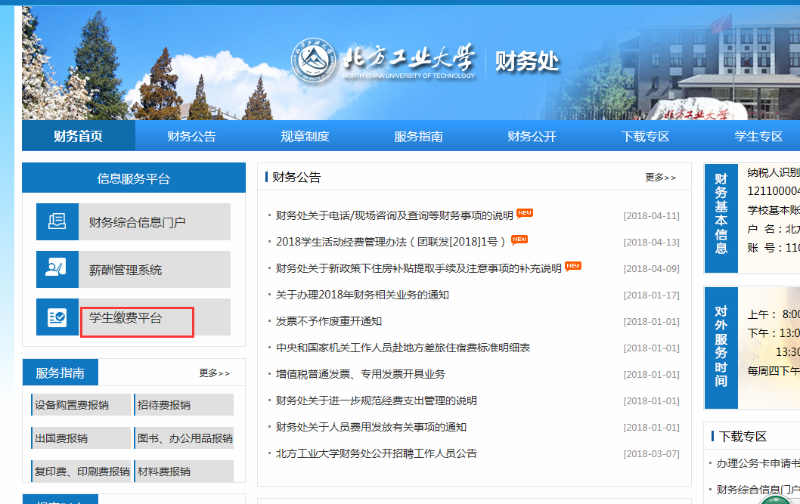 (2)登录taptap点点官方网站收费服务平台(http://sites.ncut.edu.cn/bfgycwc/),进入学生缴费界面。
