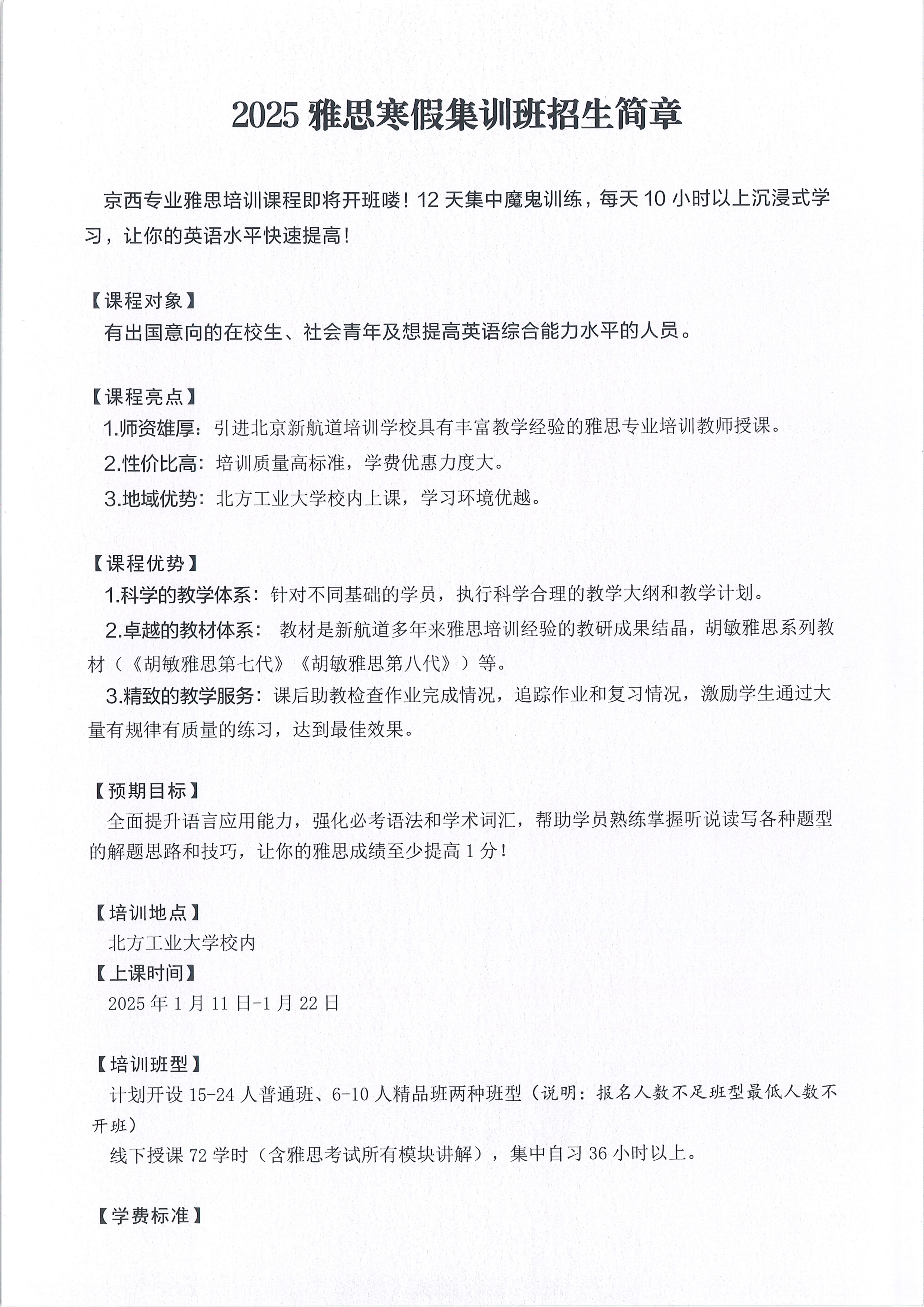 2025雅思寒假集训班招生简章