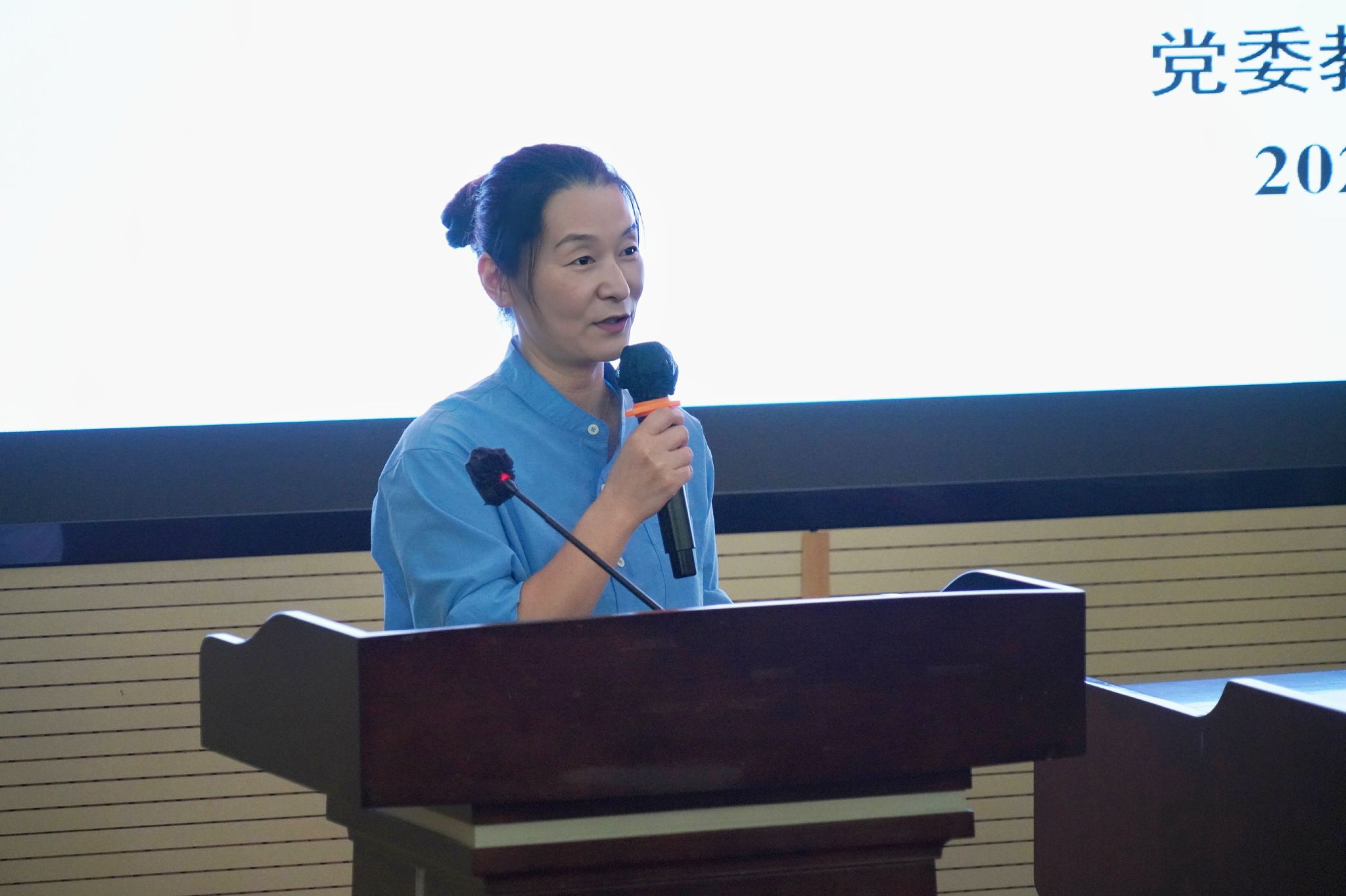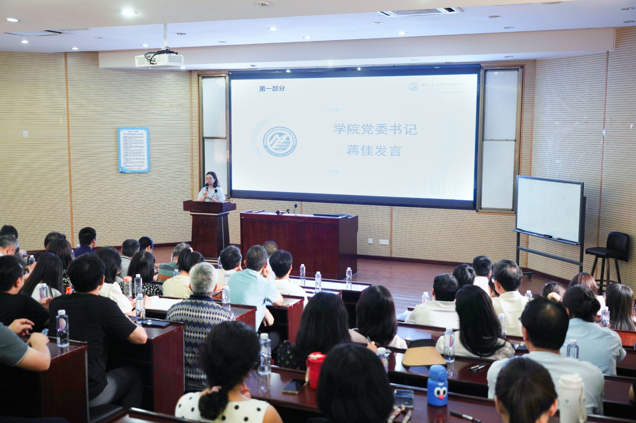 学院党委书记蒋佳发言。蒋佳回顾了自身在教育教学与党建工作中的实践经历,对学院全体教职工的信任与支持表示感谢。蒋佳指出,太阳集团tcy8722全体教职工在基层党建、服务师生、学科研究、人才培养等方面做出了突出贡献,愿同全院教职工共同携手,共同书写太阳集团tcy8722高质量发展的新篇章。
