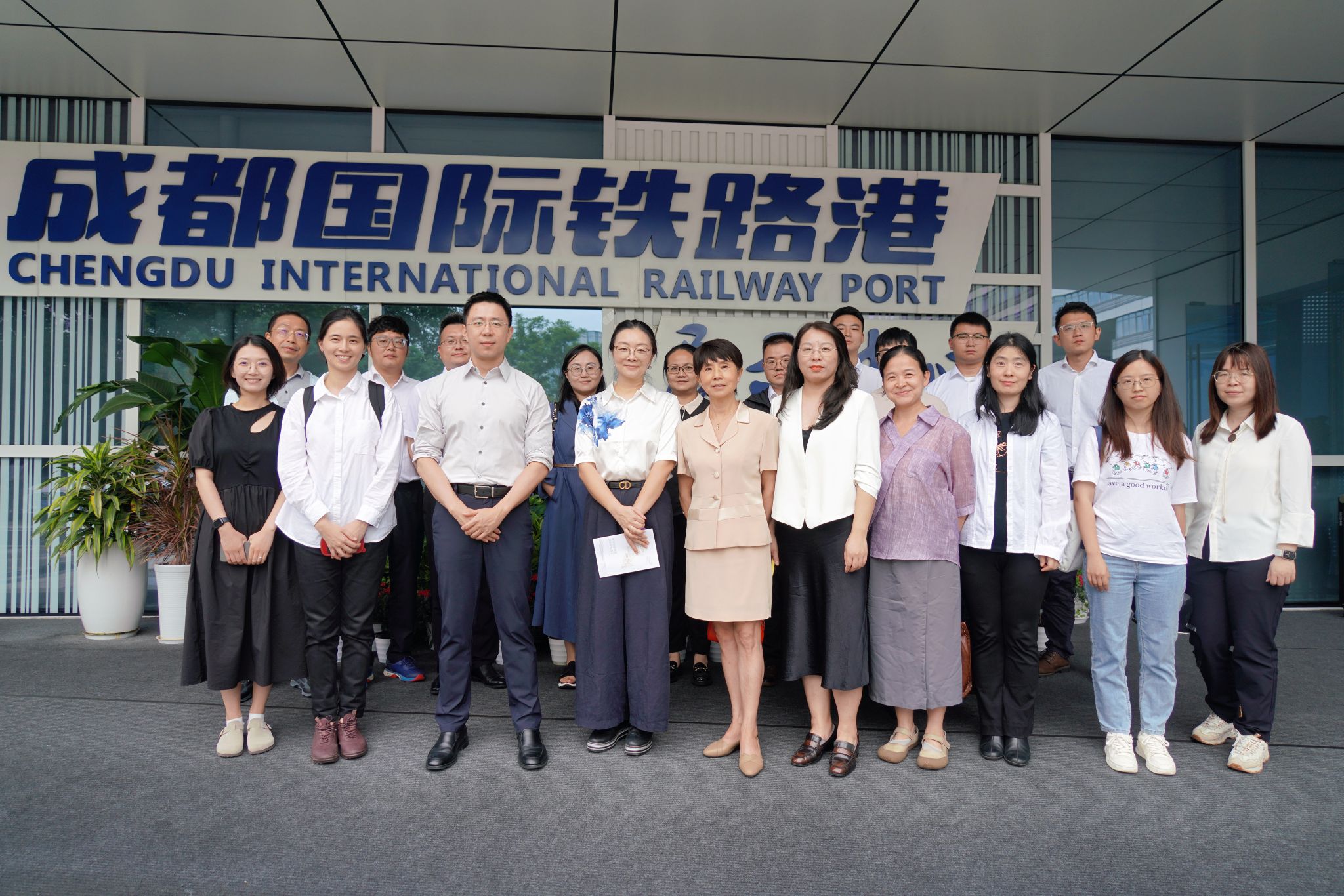 签约仪式结束后,师生代表前往成都国际铁路港展示中心开展实地调研。在讲解员的引导下,师生们通过动态沙盘、数字大屏、实物模型等多元化展示形式,系统了解了成都国际铁路港从“单一货运站”到“国家对外开放口岸”的发展历程,以及中欧班列(成都)开行以来在“通道建设、货源组织、国际合作”等方面的运营成果。