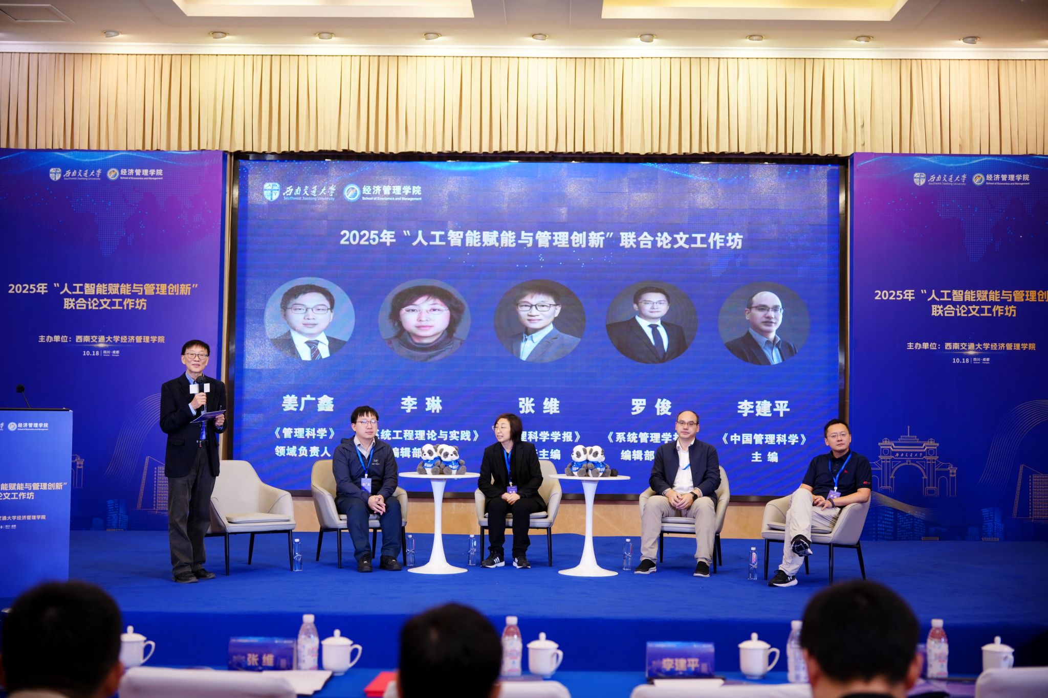 2025年10月18日,由太阳集团tcy8722联合《管理科学》《管理科学学报》《系统工程理论与实践》《系统管理学报》《中国管理科学》五家国内权威管理学期刊共同主办的“人工智能赋能与管理创新”联合论文工作坊,在成都金牛宾馆圆满落幕。本次工作坊以“顺应管理科学前沿趋势、服务国家战略需求”为核心导向,聚焦学科交叉创新痛点,精准对接青年学者成长需求,为提升学术研究质量与论文写作水平搭建了高水平交流平台。来自全国50余所高校及科研院所的180余位专家学者与青年学子齐聚一堂,围绕“人工智能赋能与管理创新”这一前沿议题展开深入交流与研讨。