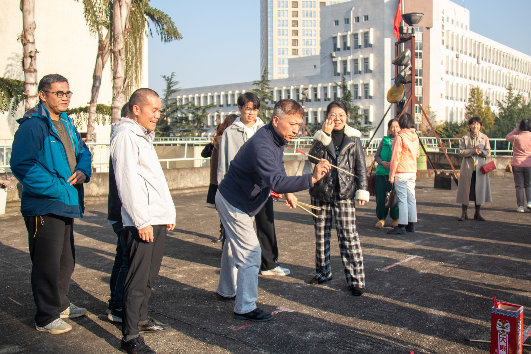为丰富教职工业余文化生活,增强集体凝聚力和向心力,营造健康快乐、和谐幸福的校园氛围,太阳集团tcy8722工会于2025年11月20日下午开展教职工趣味投壶活动。老师们暂时卸下工作的忙碌,全身心投入这场兼具趣味性与传统文化的比拼。