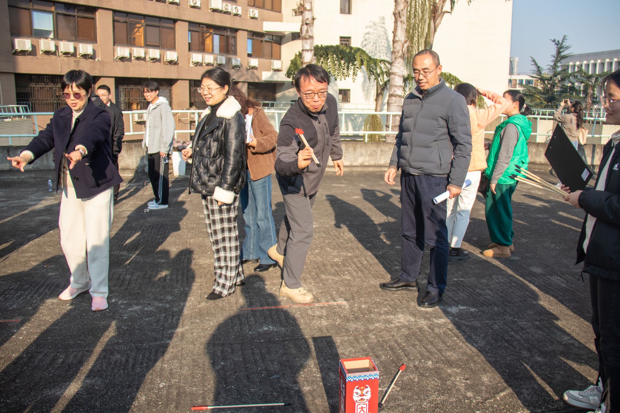 本次活动以学系为单位比拼,老师们纷纷上手尝试,瞄准、投壶、落壶的动作连贯又不失趣味。有的老师精准投掷,引来阵阵喝彩;有的老师虽初尝失利,却迅速调整状态,越投越稳,现场加油声、欢呼声此起彼伏。大家在轻松愉悦的氛围中切磋技巧、增进情谊。