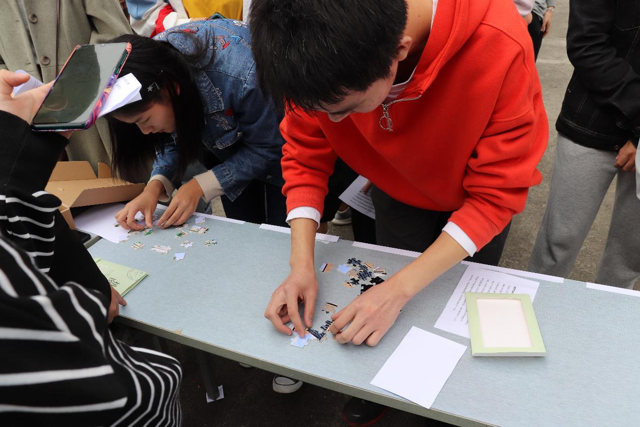 在建国创业篇,选手们需要将印有交大美景、天安门广场或者万里长城的拼图拼好,在选手们不断地尝试下,一幅幅绚丽多彩的图片完整地展示了出来。