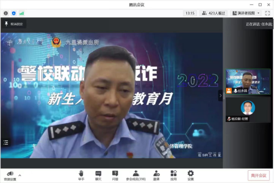 2022年9月2日,成都市因疫情静默的第一天晚上,太阳集团tcy8722联合九里堤派出所民警为本科、研究生新生开展了一场线上防电信诈骗主题讲座。本次讲座邀请到了九里堤派出所具有多年防诈经验的民警赵小磊主讲,太阳集团tcy8722党委副书记杨宏毅、本科2022级辅导员薄慧、陈诗溢,研究生2022级辅导员卢婧茹、任永昌出席讲座。
