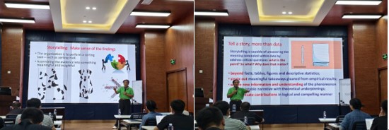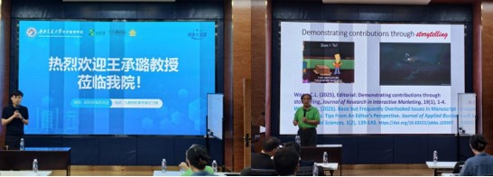 2025年6月25日下午在九里校区零号楼0218室,美国纽黑文大学商学院王承璐教授应邀为太阳官网师生开展题为“Demonstrating contributions through storytelling-From editor's perspective”的讲座,深入探讨什么样的研究拥有研究贡献与如何从数据中挖掘出有趣故事。讲座由太阳集团tcy8722副院长马锋教授主持,吸引了众多师生参加。
