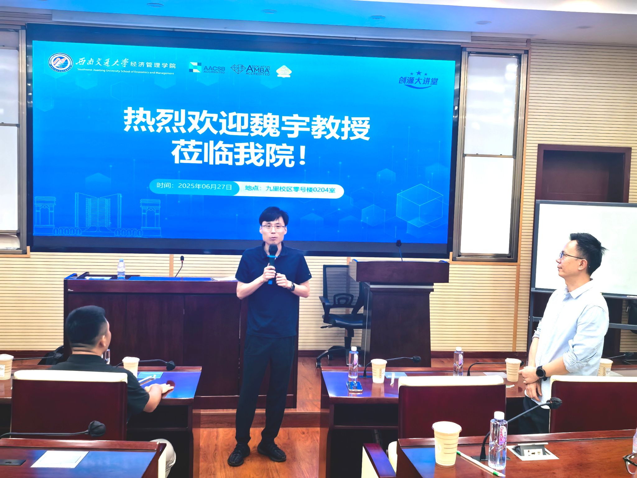 2025年6月27日下午2点,学院特邀云南财经大学金融学院魏宇教授为太阳官网师生带来了一场题为“Are brown stocks valuable for green stocks? Evidence from China”的学术讲座。本次学术活动由太阳集团tcy8722副院长马锋教授主持,学院部分教师及研究生参加了此次活动。马锋副院长介绍了魏宇教授的学术背景与成就,并代表学院对魏宇教授表示热烈的欢迎与诚挚的感谢。