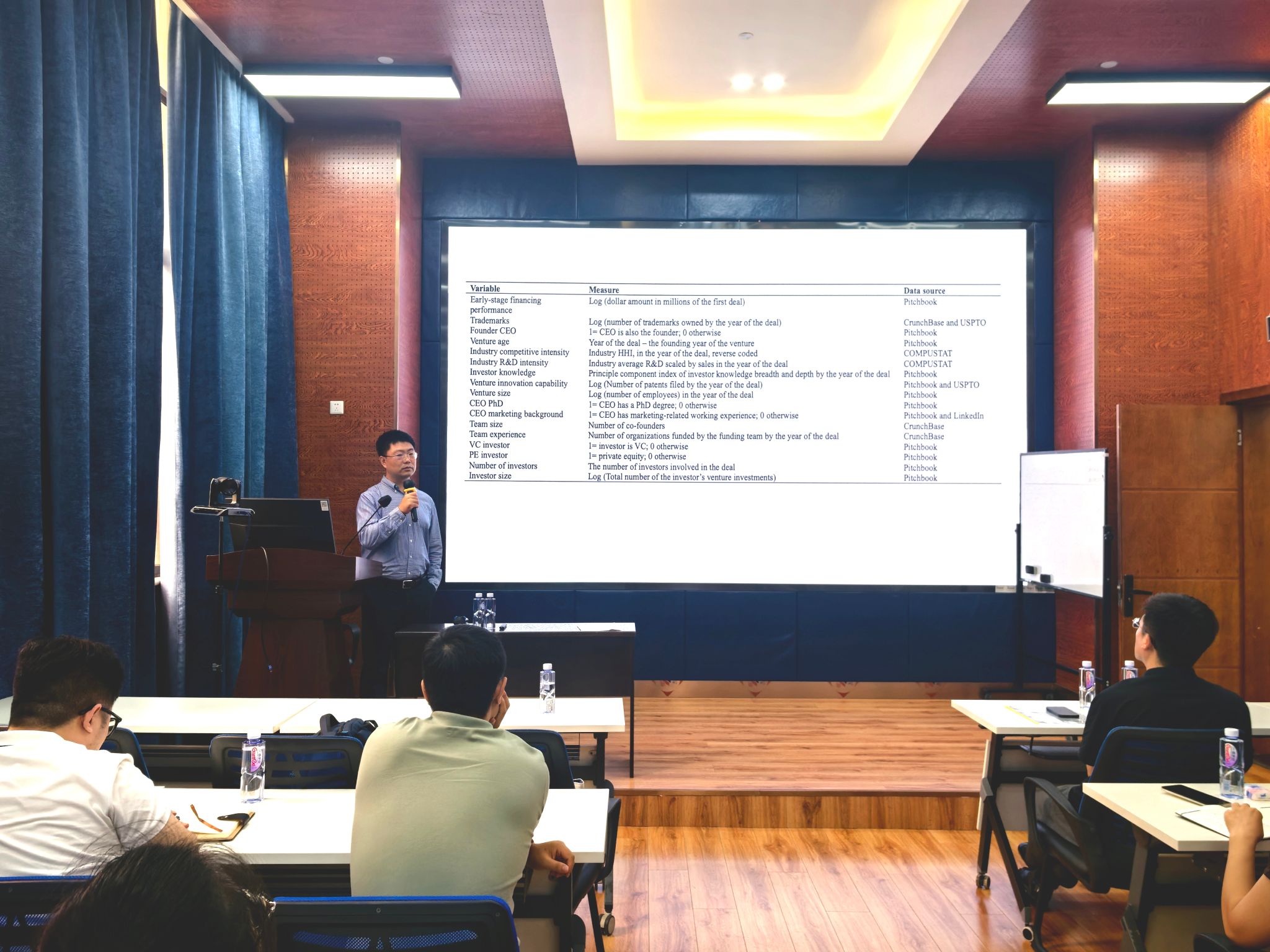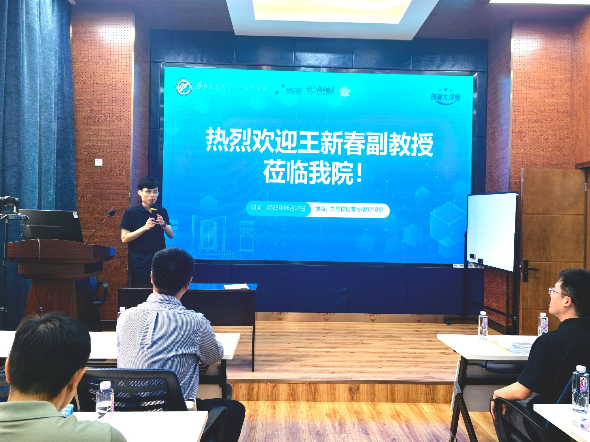 讲座最后,王新春副教授与现场师生围绕“无形资产信号与融资成效的因果机制”、“新创企业如何平衡价值创造与获取”、“品牌战略与投资人决策逻辑”等议题展开热烈互动,并就大家在研究中遇到的具体问题给予了耐心细致的解答。整场讲座内容扎实、视角新颖,不仅加深了师生们对新创企业早期融资逻辑的理解,也为相关领域的研究提供了有力启发。