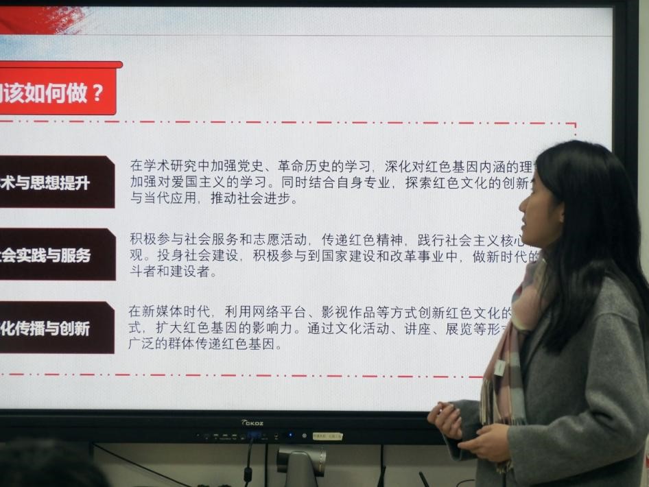 2024年12月8日下午14:00,为进一步深入学习贯彻习近平总书记系列重要讲话精神,进一步推动高校思想政治工作和党的建设工作,太阳集团tcy8722研究生会临时党支部于0411教室开展了“传承红色基因、厚植爱国情怀”专题学习活动。
